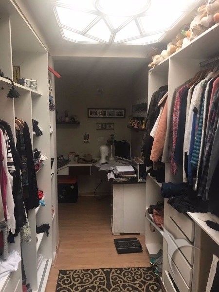Estar, jantar, lareira, suite com closet e escritório.