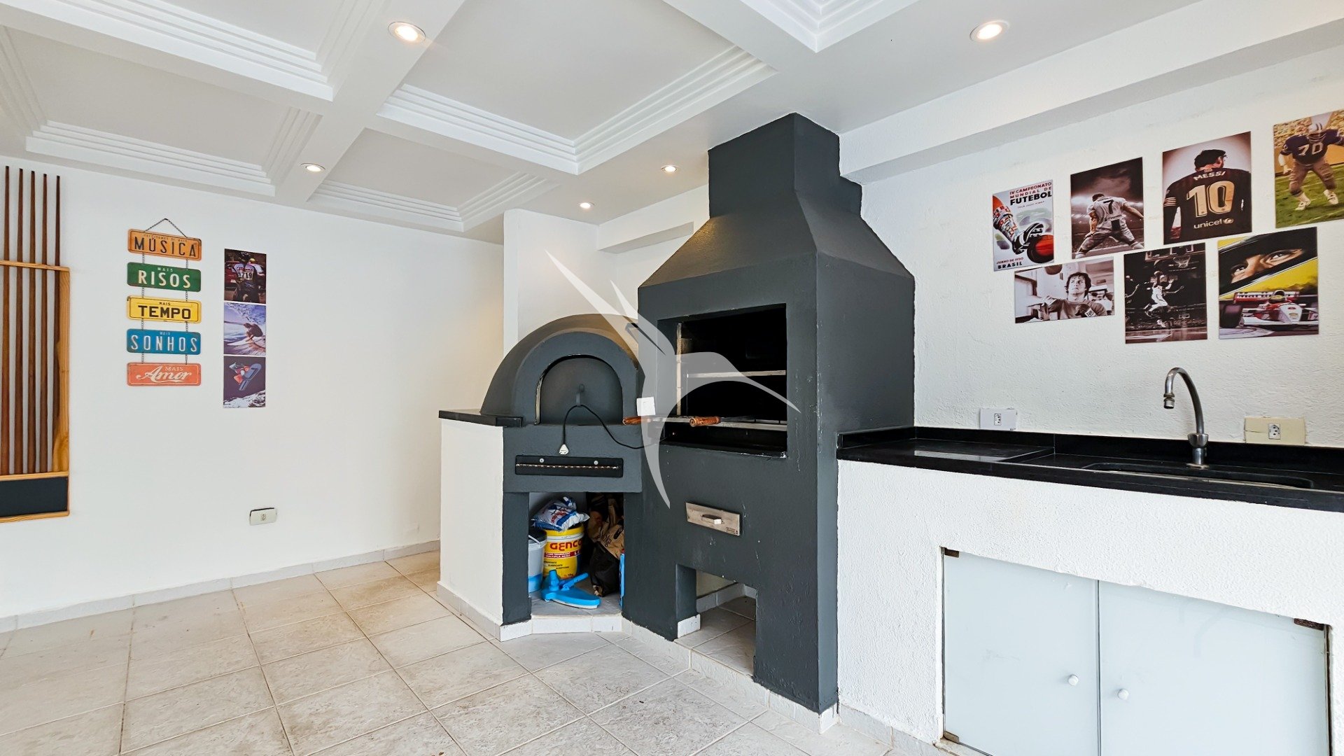 - Área gourmet com churrasqueira e forno de pizza, ideal para preparar deliciosas refeições e descontrair com os amigos.