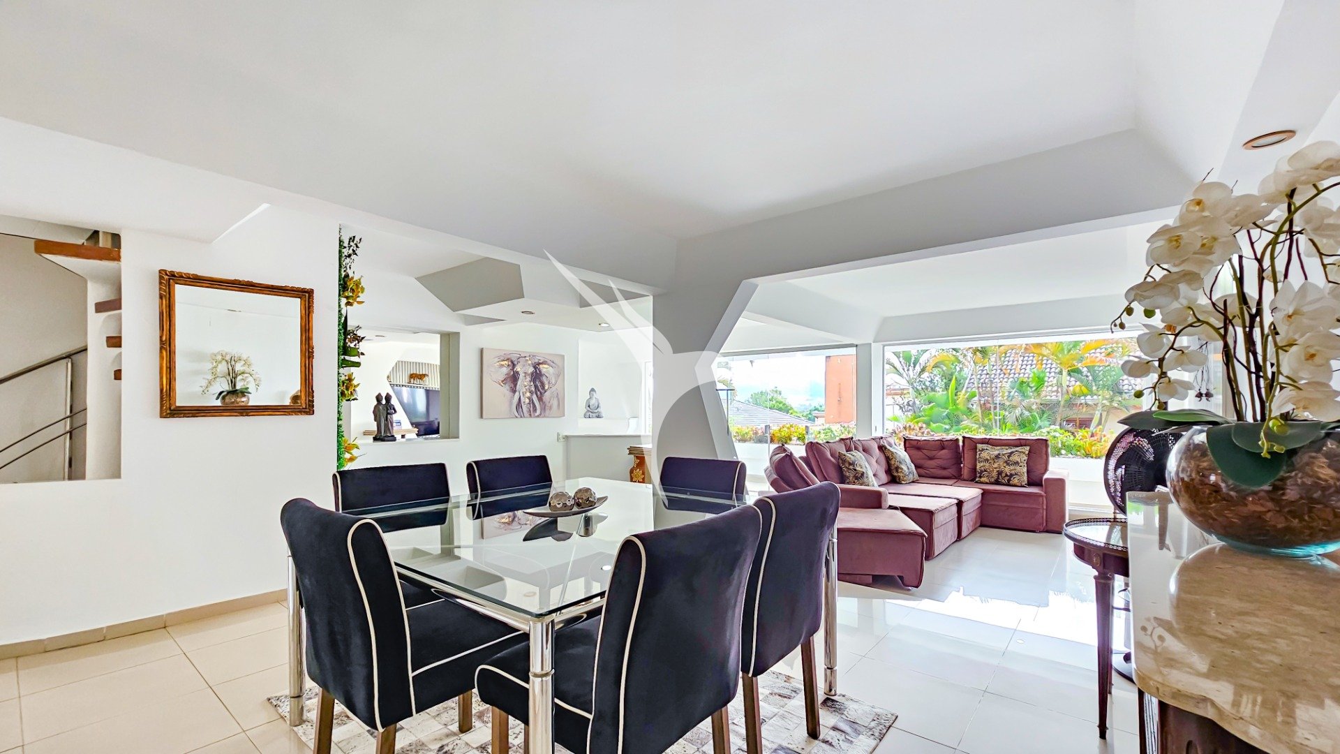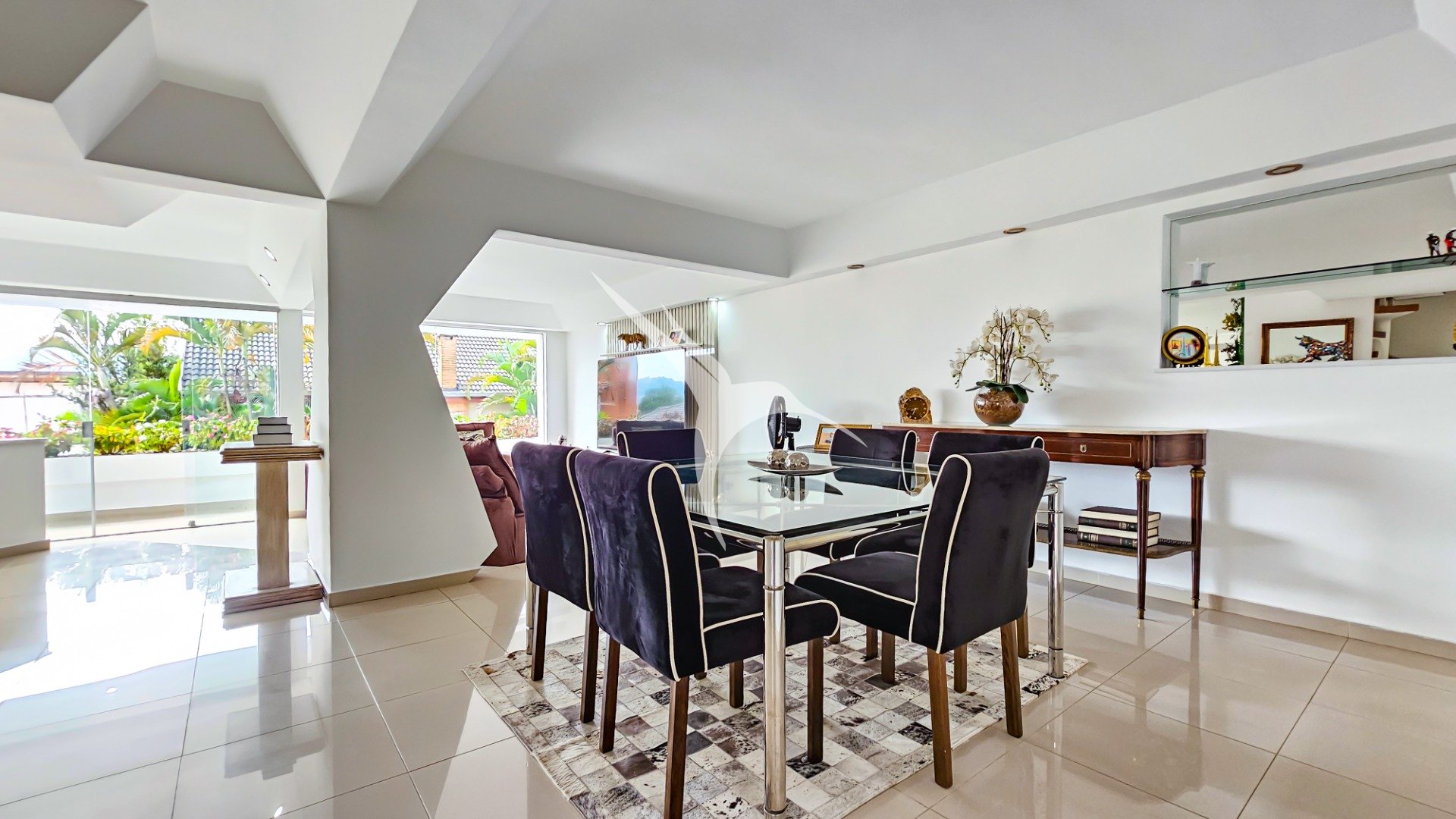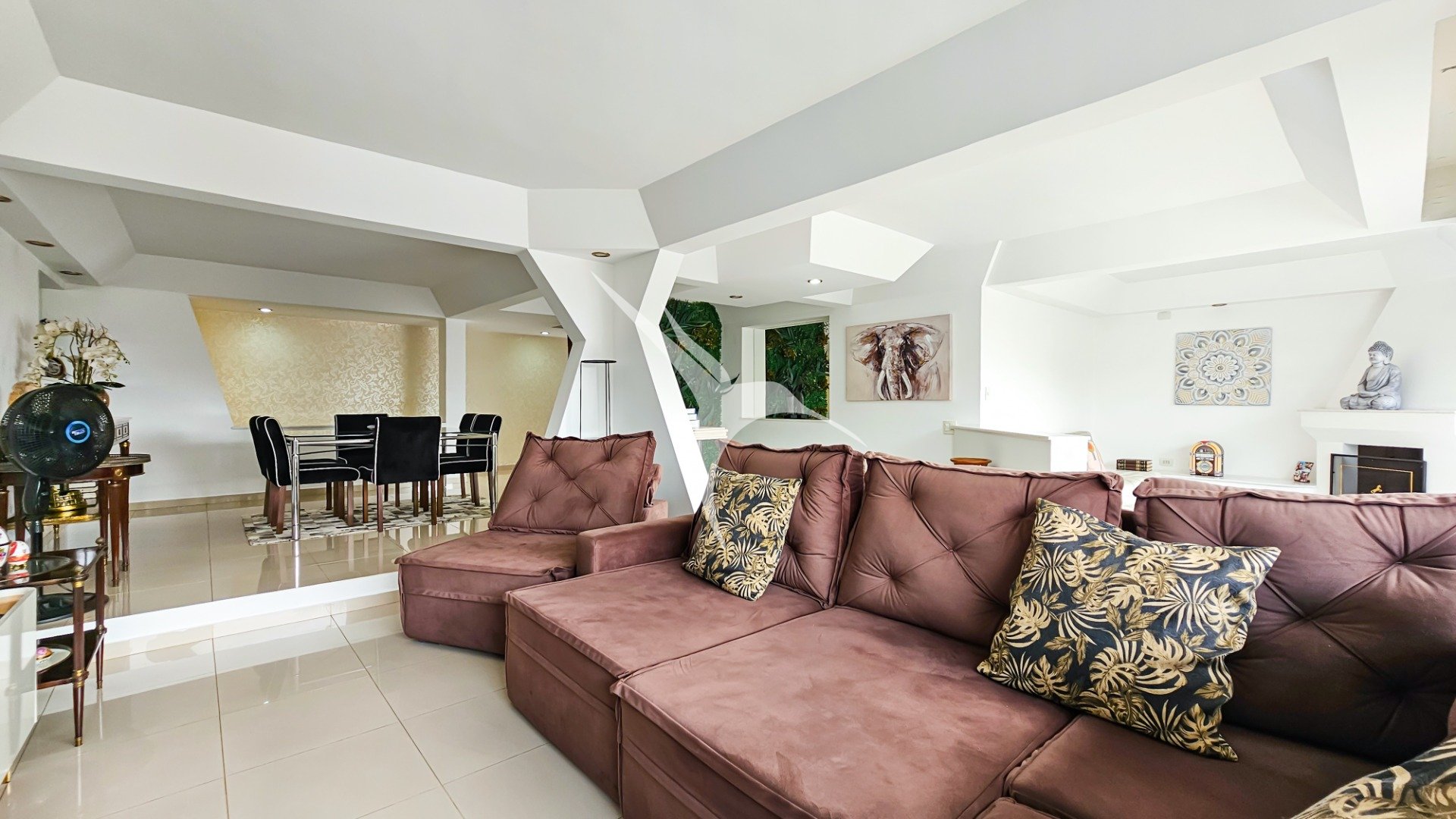 - Sala para 3 ambientes, incluindo zona de estar com lareira, sala de TV e um elegante espaço para refeições.