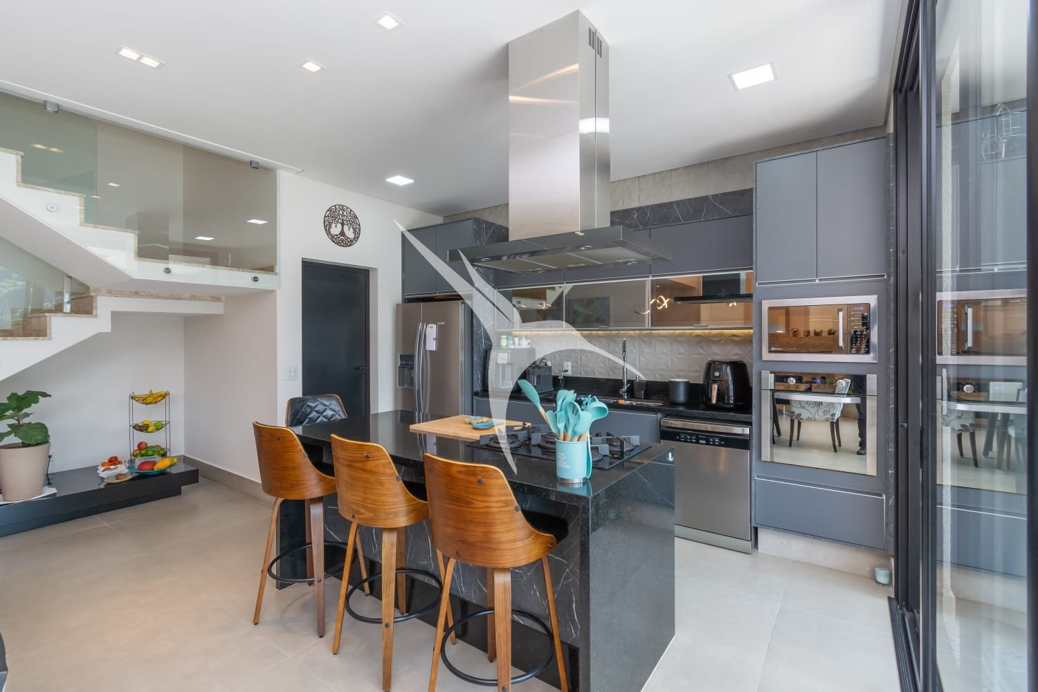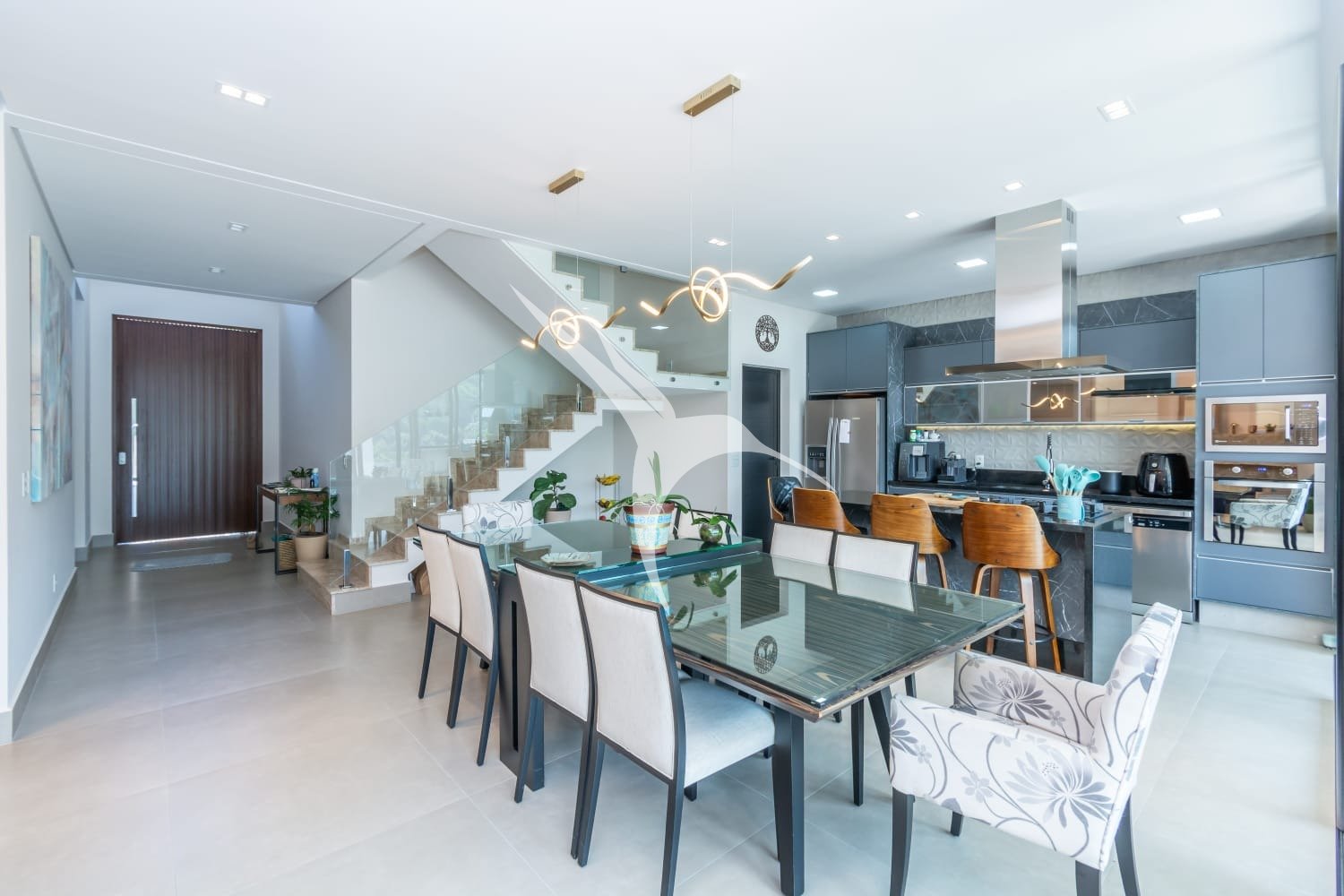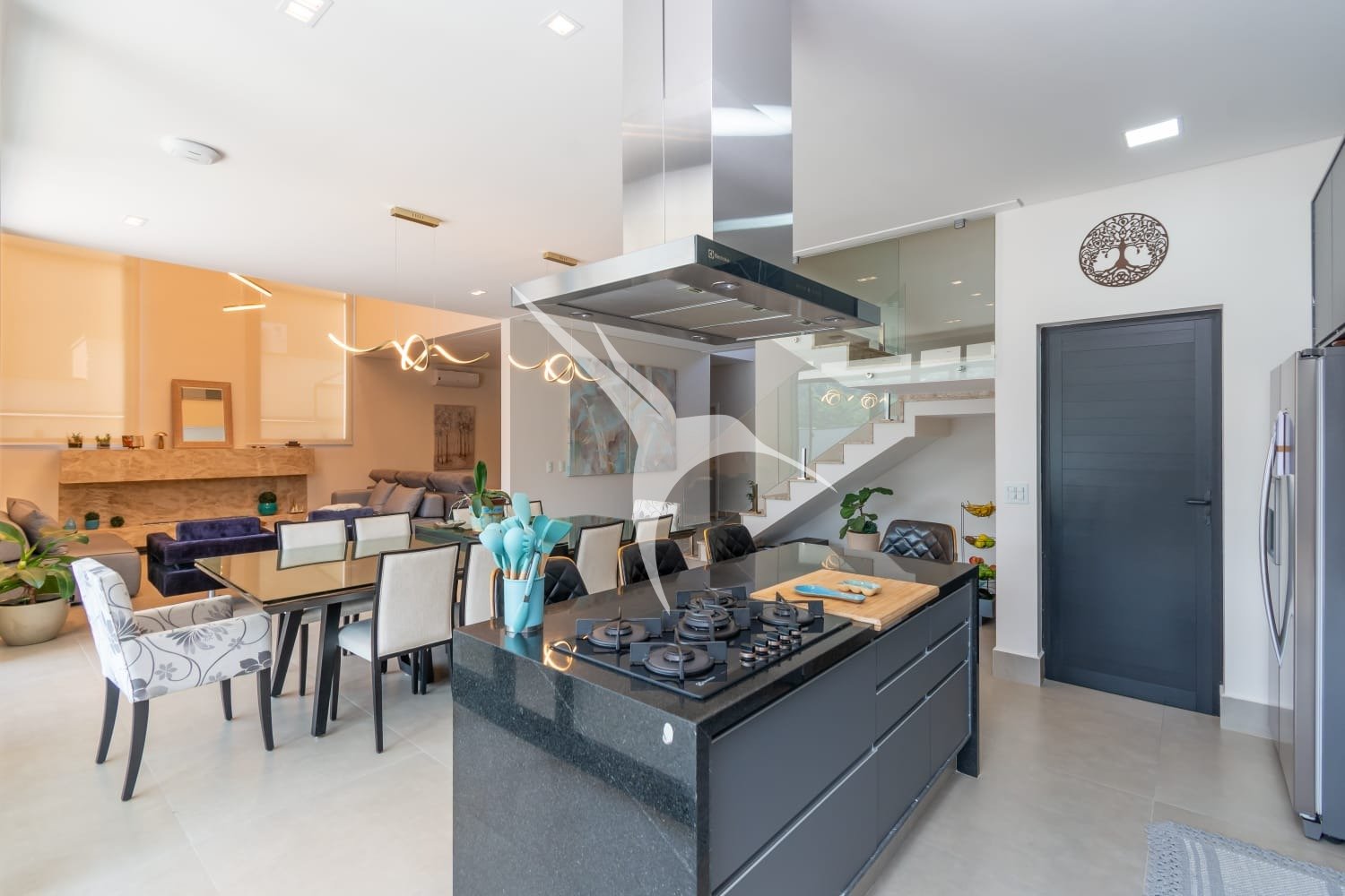 Conceito Aberto: A cozinha planejada, com ilha central, se integra à sala de jantar, ideal para momentos em família. A área gourmet, com churrasqueira, está convenientemente localizada ao lado da cozinha.