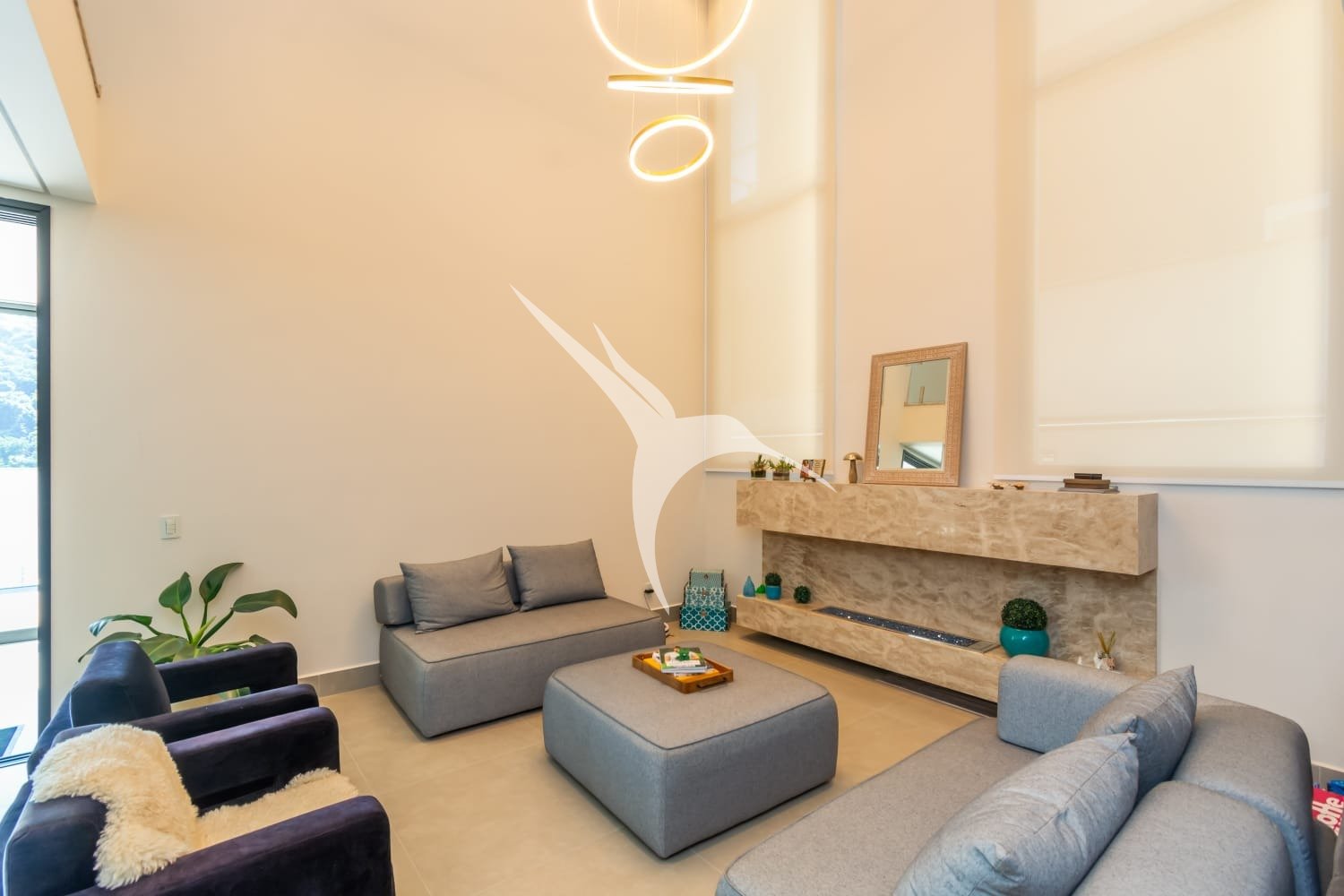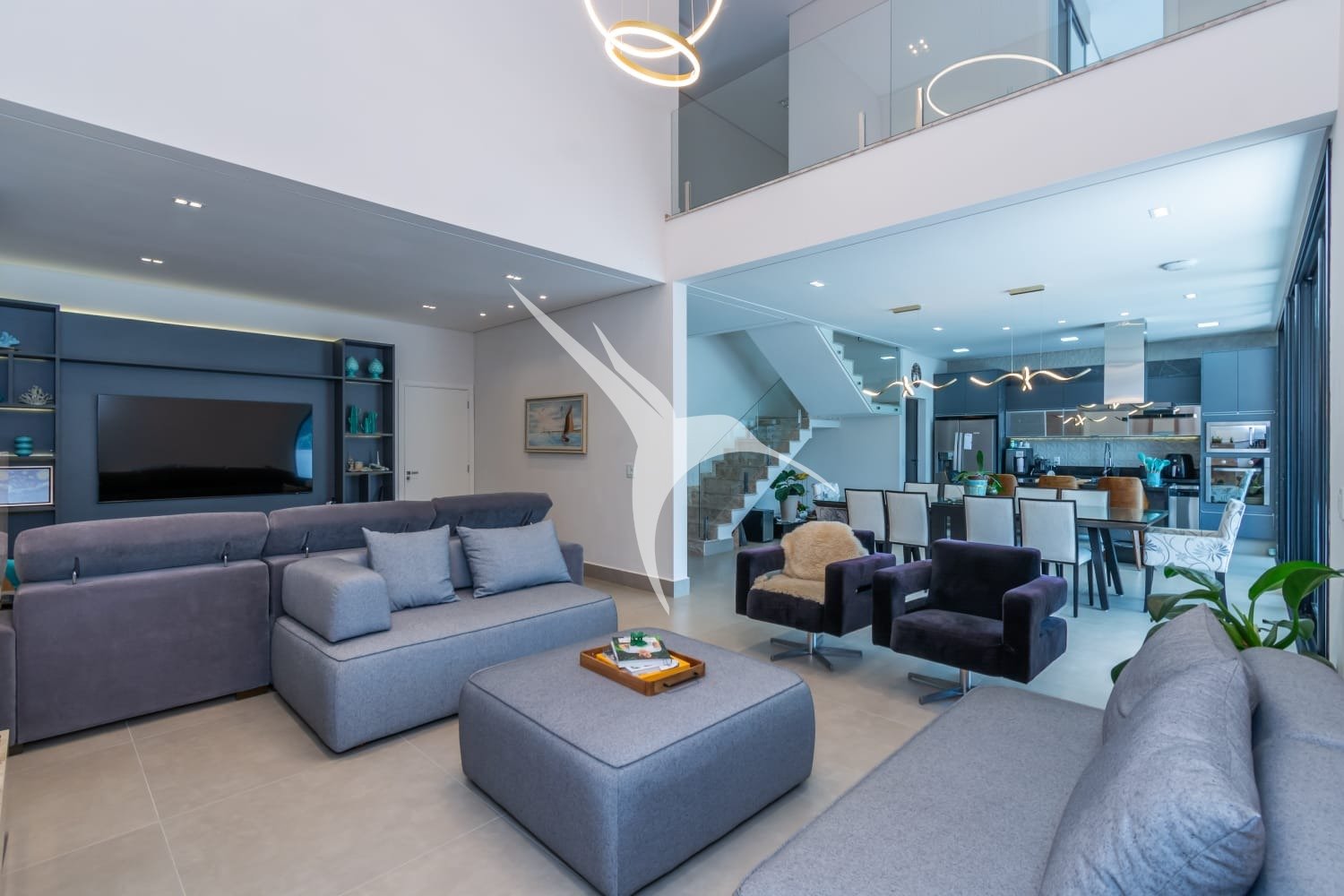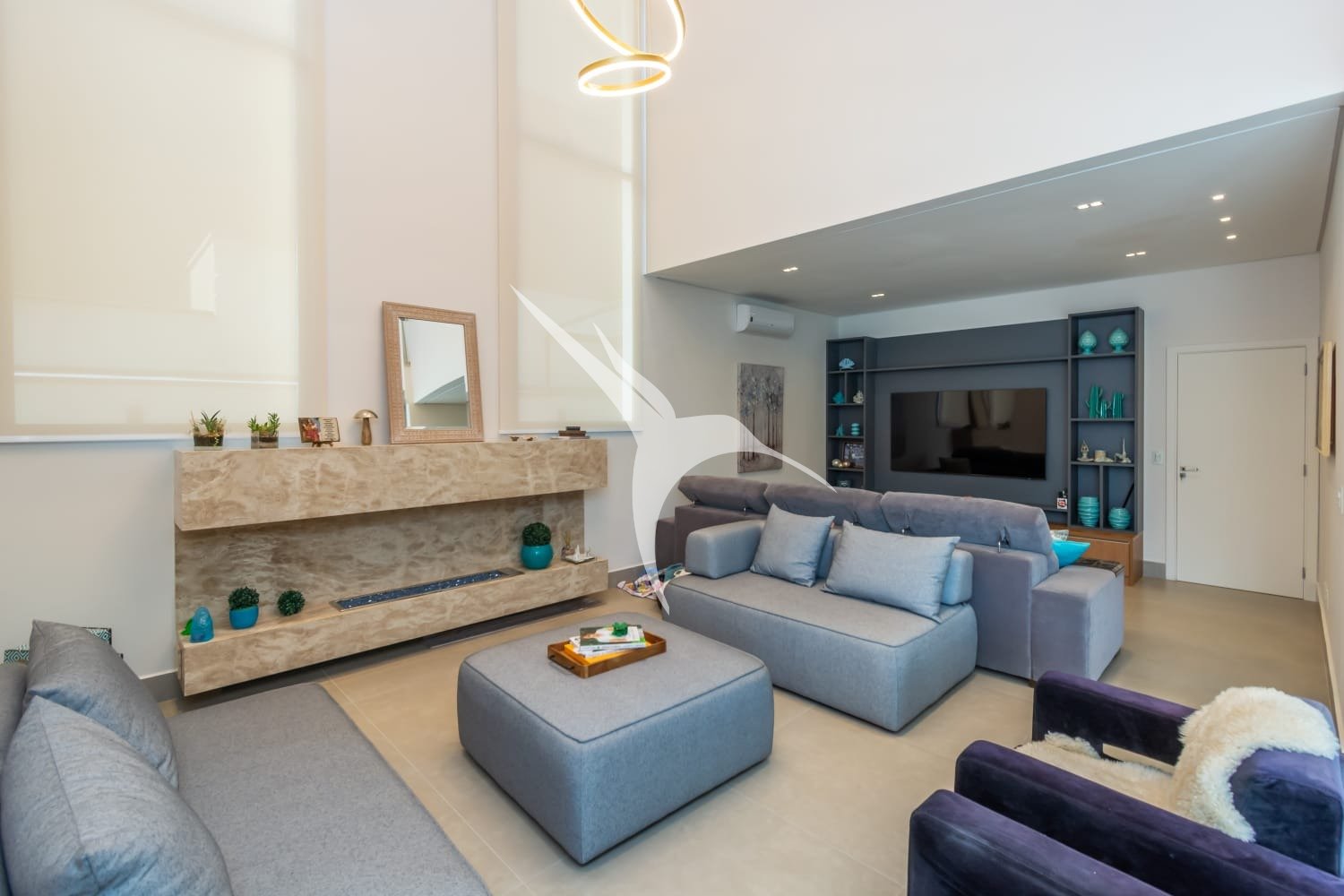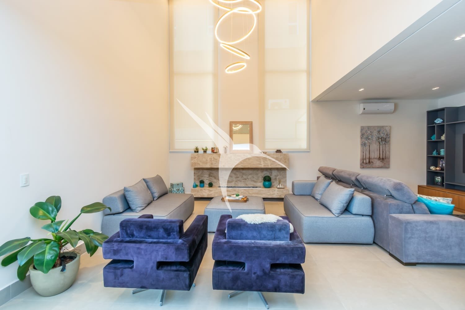 Ambientes Aconchegantes: A casa conta com um escritório repleto de armários, um lavabo, e uma sala de TV. O living, com pé direito duplo, possui uma imponente lareira em mármore e cristais, proporcionando um toque de elegância.