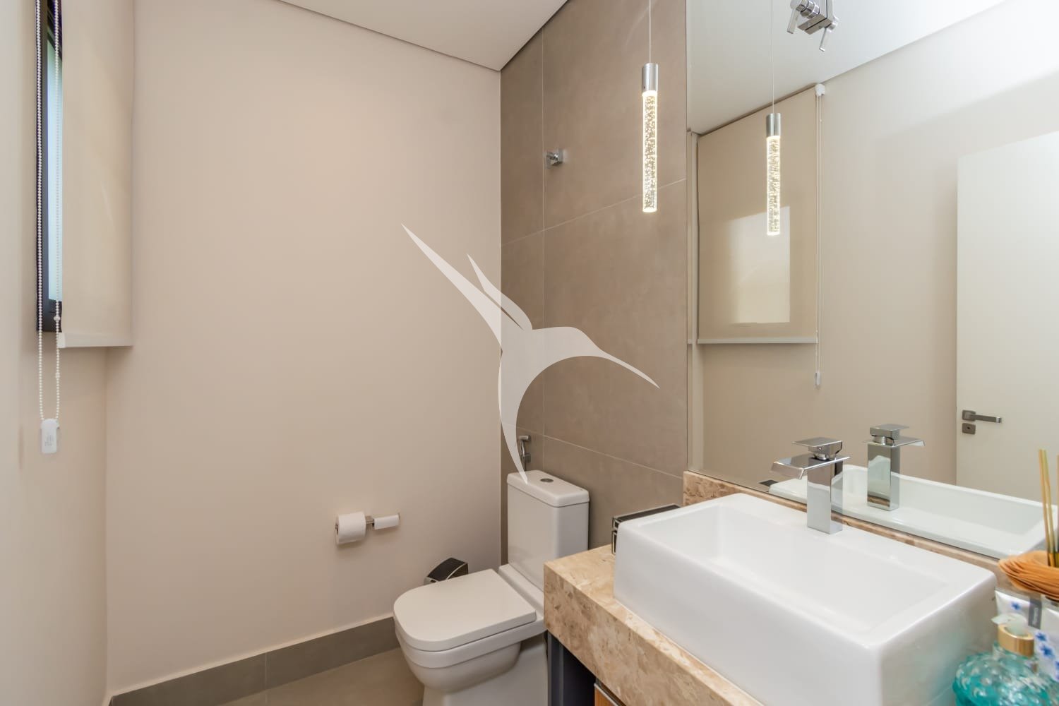 3 Amplas Suítes: Inclui uma suíte máster com banheira de hidromassagem, chuveiro duplo, closet com penteadeira e um espaço para academia com vista deslumbrante para a mata preservada. Todas as suítes são equipadas com ar-condicionado split, sacadas e persianas automáticas controladas por remoto, além de armários planejados de alta qualidade.