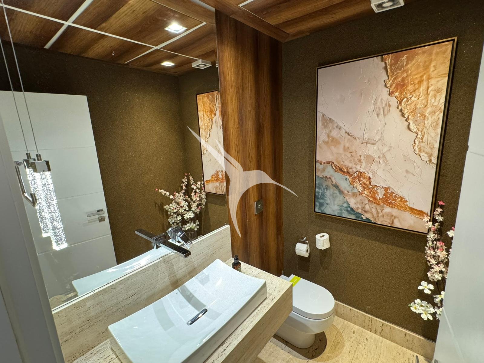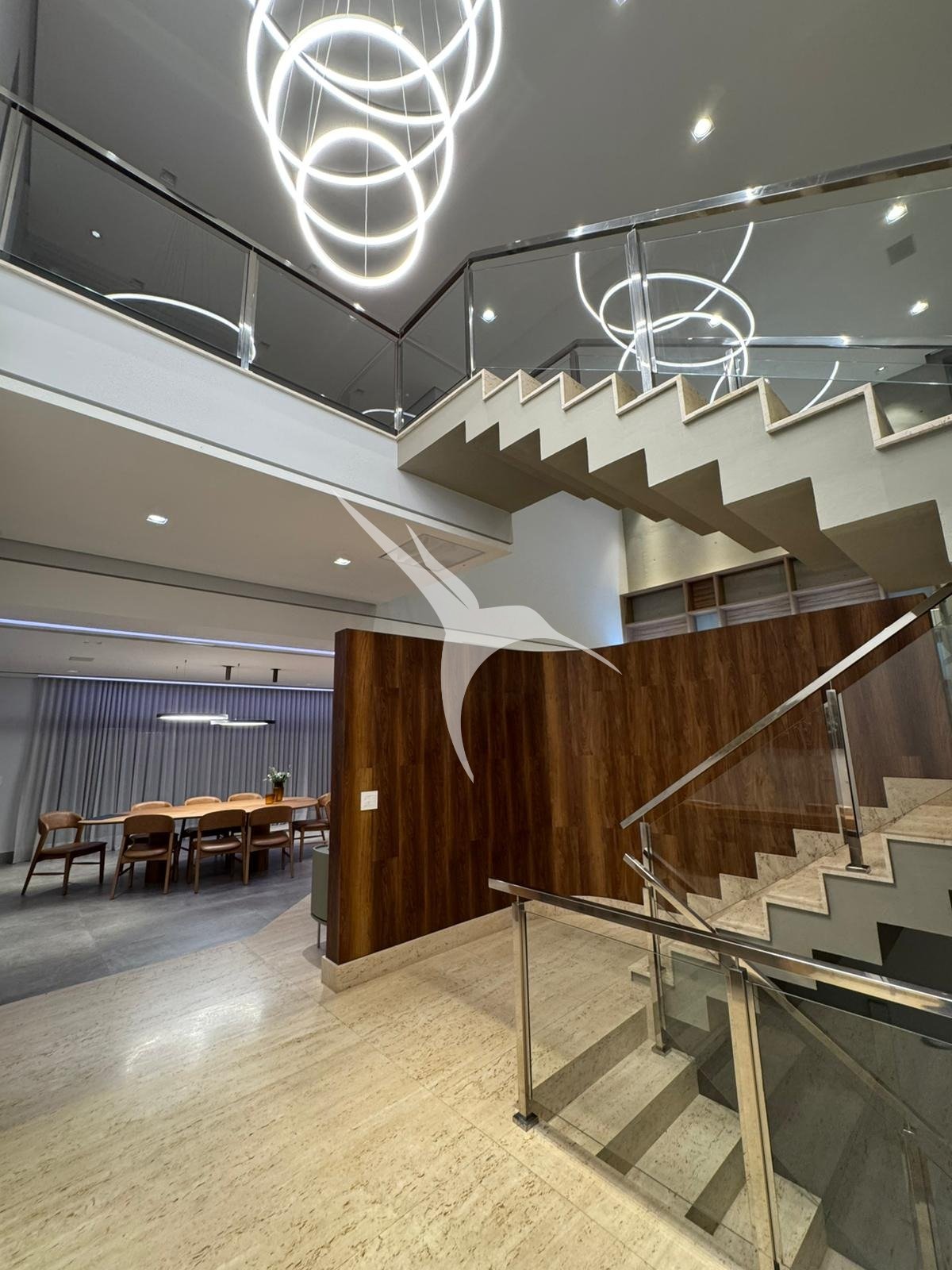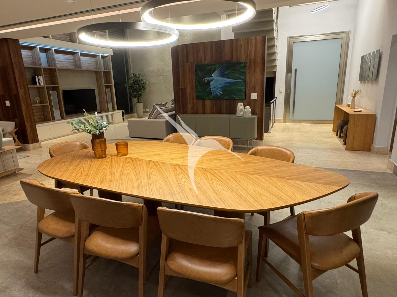 Casa semi-mobiliada: projeto de design de interiores com móveis e objetos de decoração de alto padrão em todos os ambientes: sala de jantar, sala de estar, home theater, cozinha, lavabo, área gourmet, varanda e piscina (térreo completo). Cozinha, espaço gourmet e área de serviço totalmente equipados com eletrodomésticos.