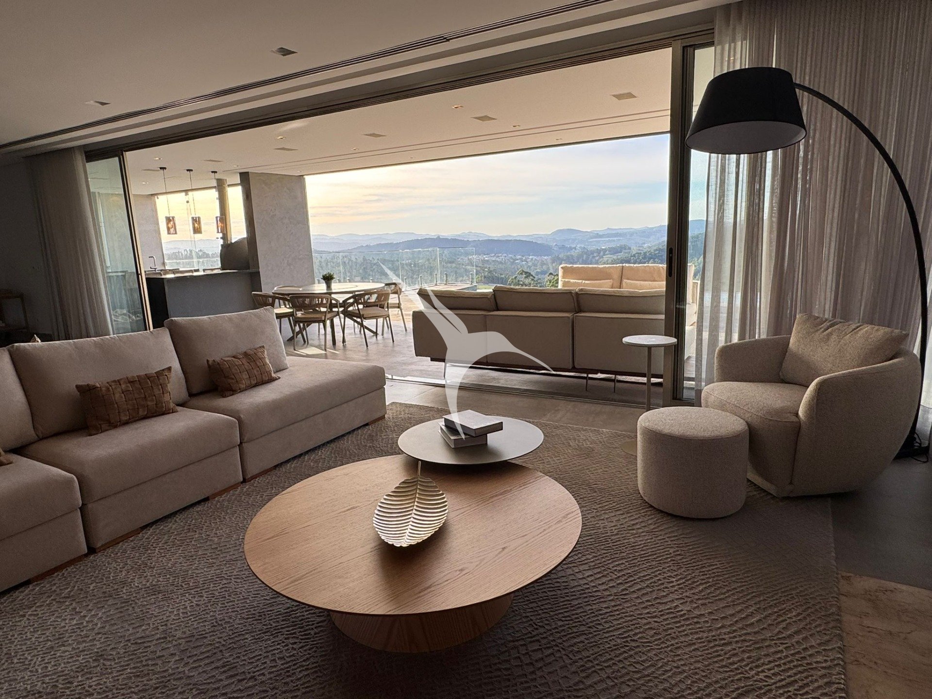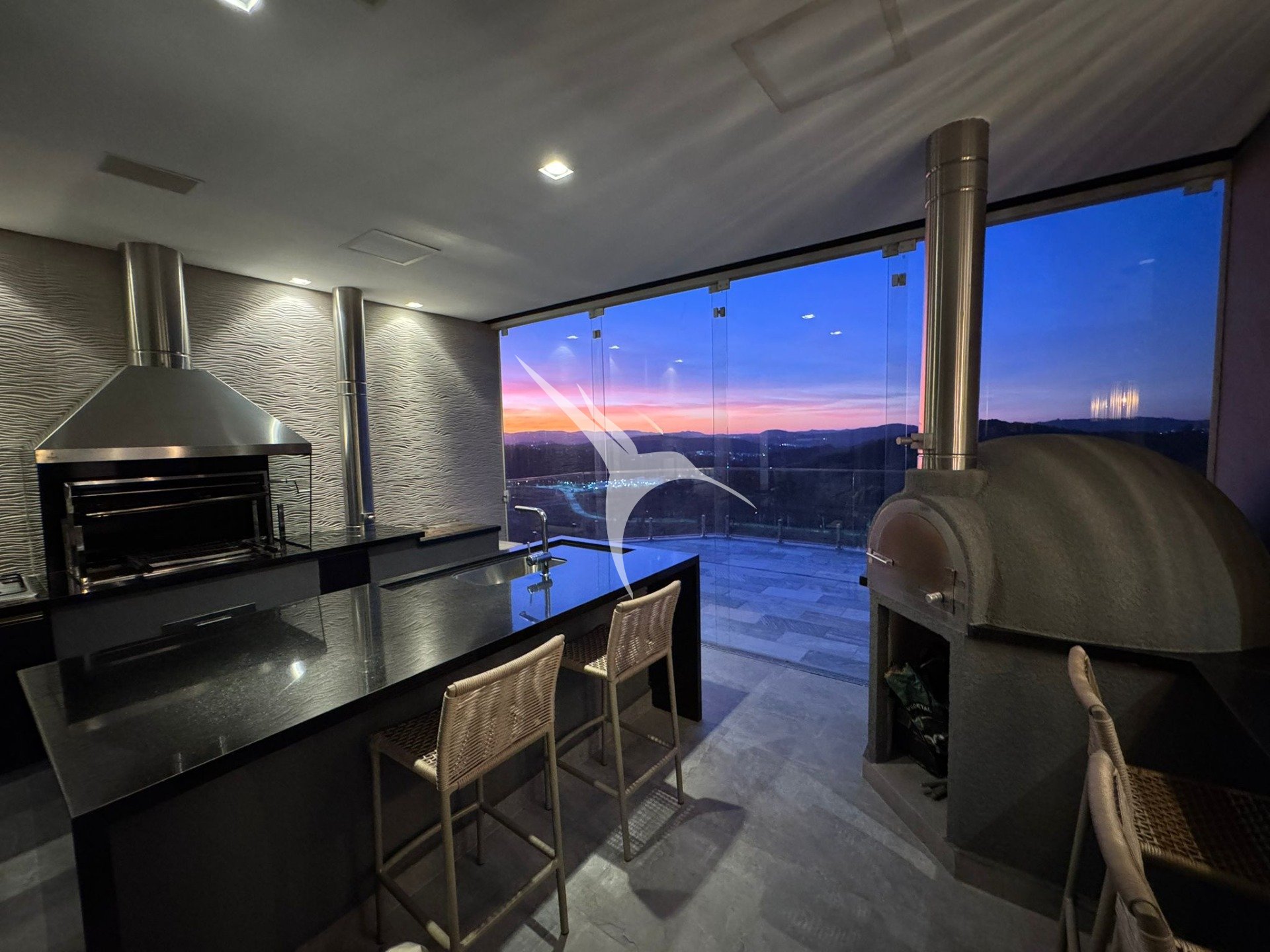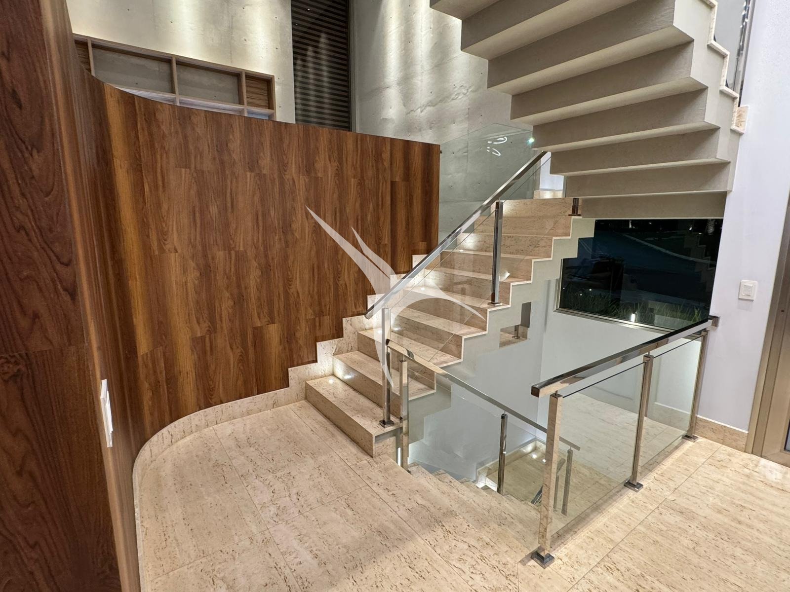 Casa semi-mobiliada: projeto de design de interiores com móveis e objetos de decoração de alto padrão em todos os ambientes: sala de jantar, sala de estar, home theater, cozinha, lavabo, área gourmet, varanda e piscina (térreo completo). Cozinha, espaço gourmet e área de serviço totalmente equipados com eletrodomésticos.