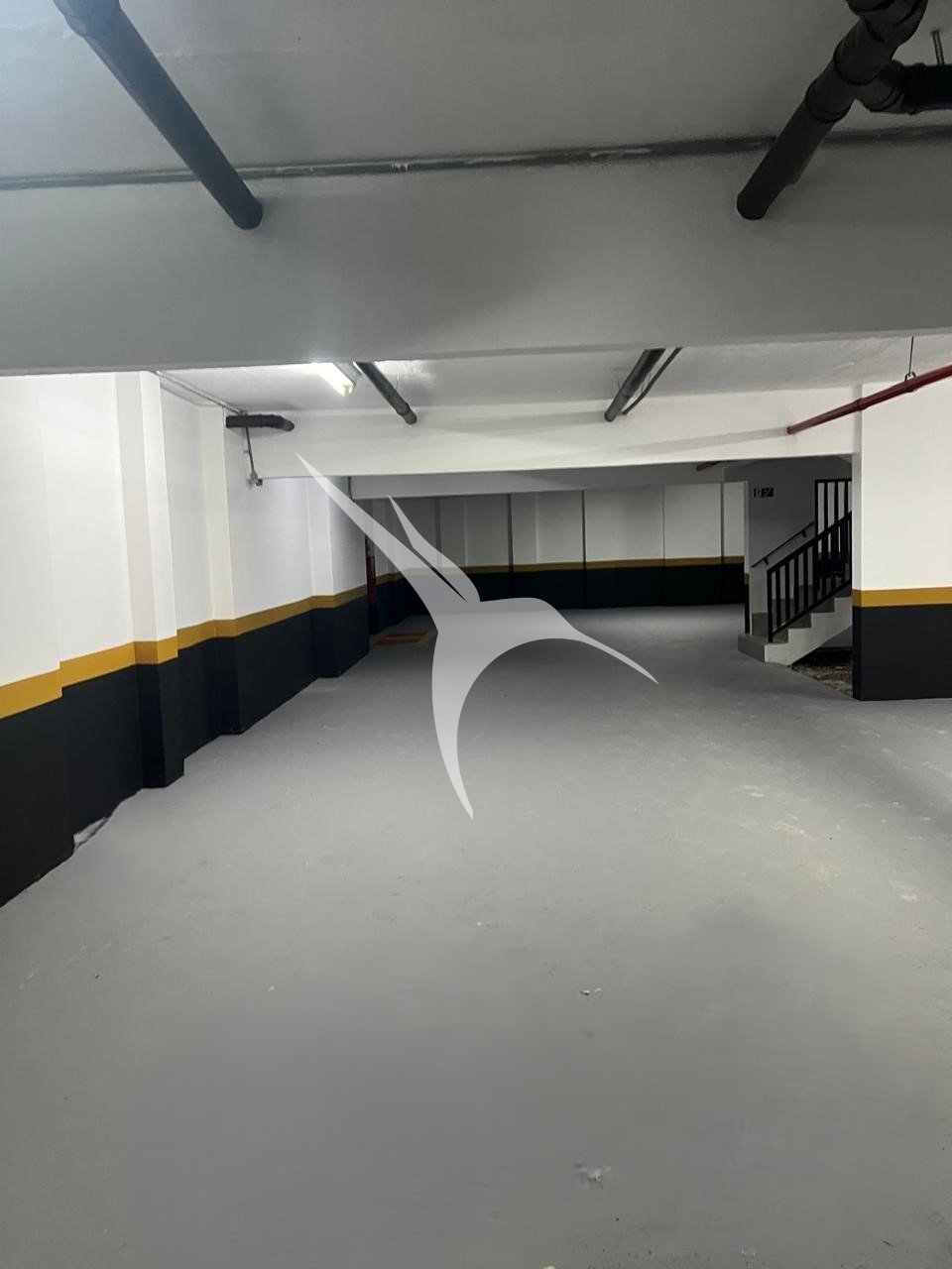 Com portão automático, 10 vagas cobertas, 2 depósitos e 1 banheiro.