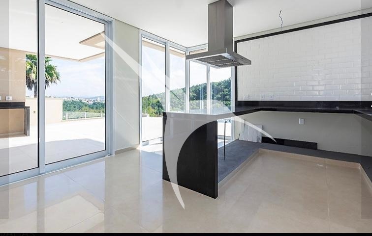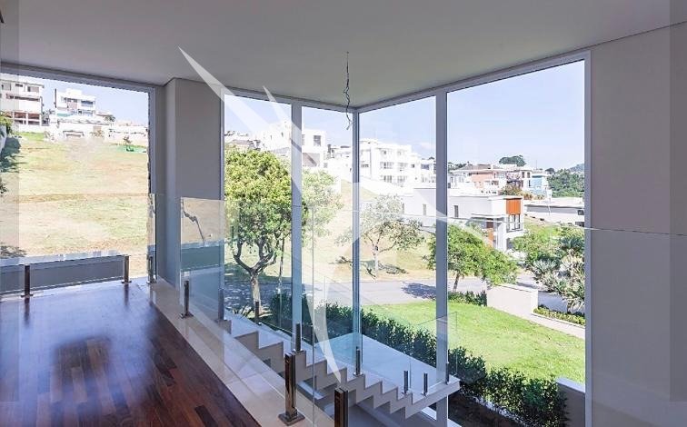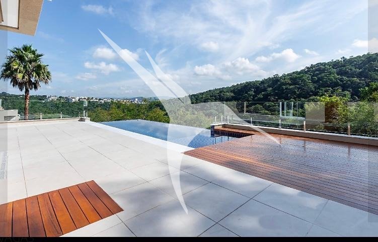 4 suítes, sendo a máster com hidro e vista panorâmica. Living com pé-direito duplo. Escritório. Elevador.