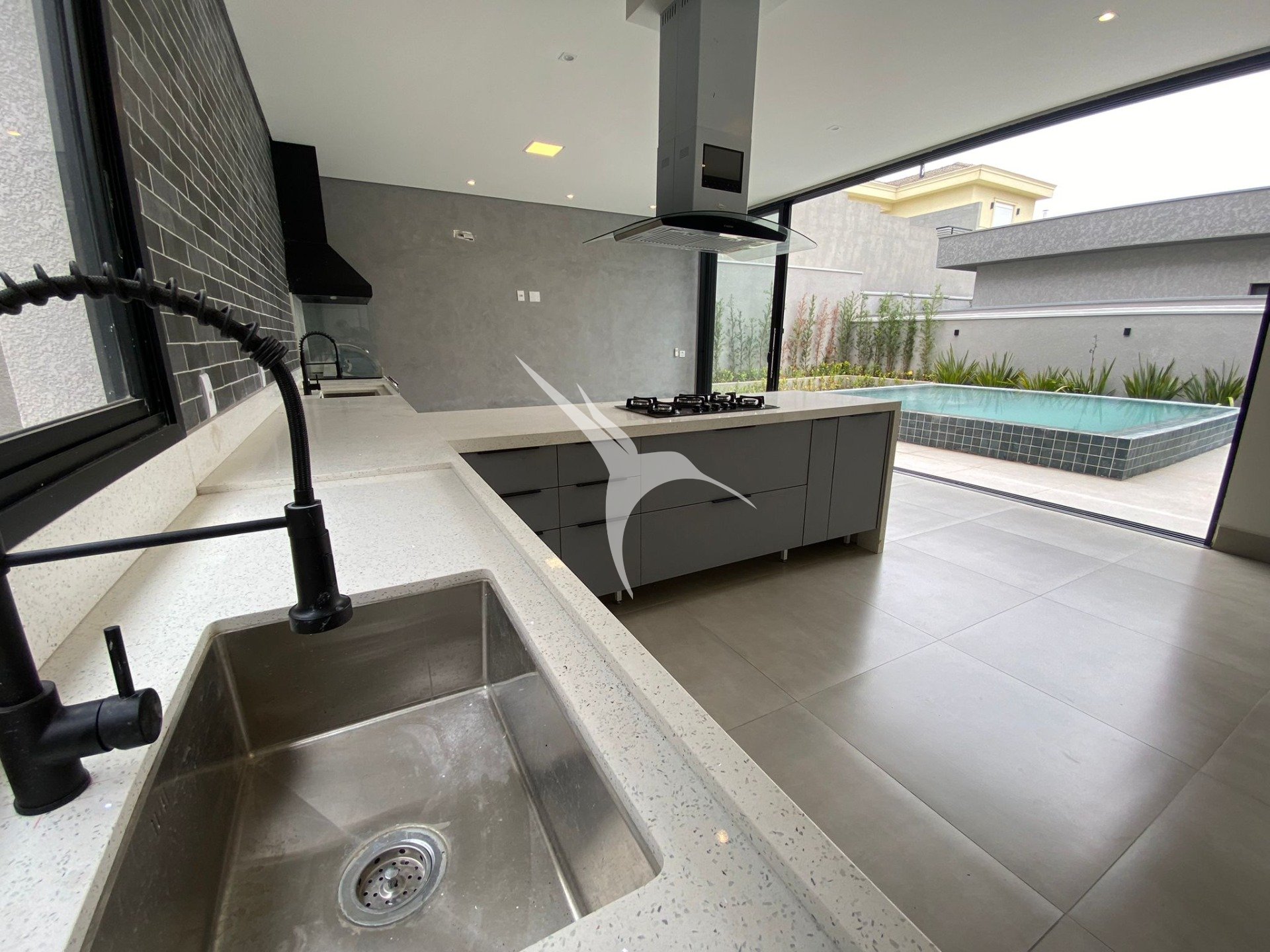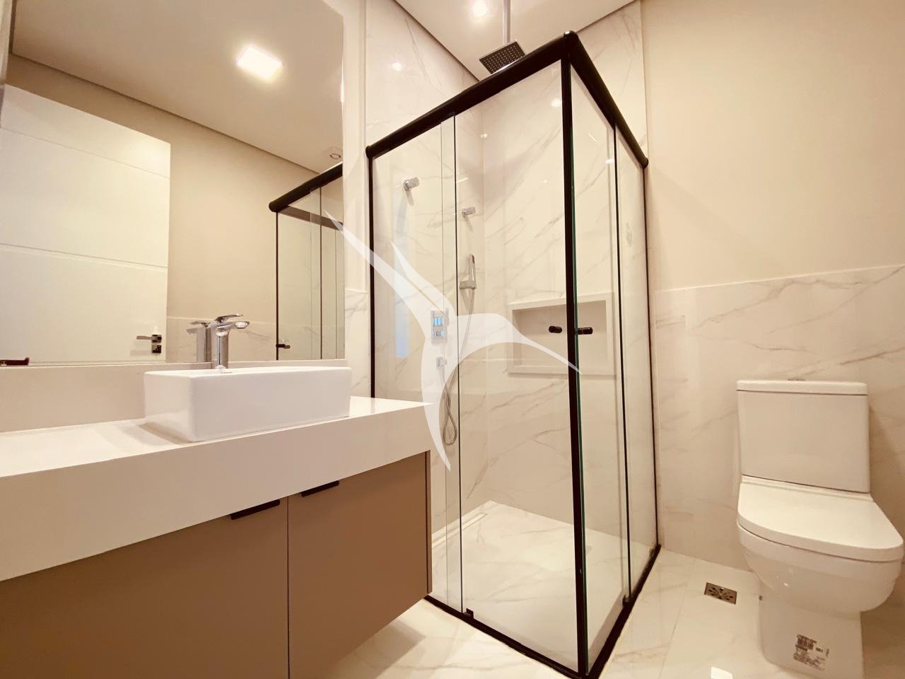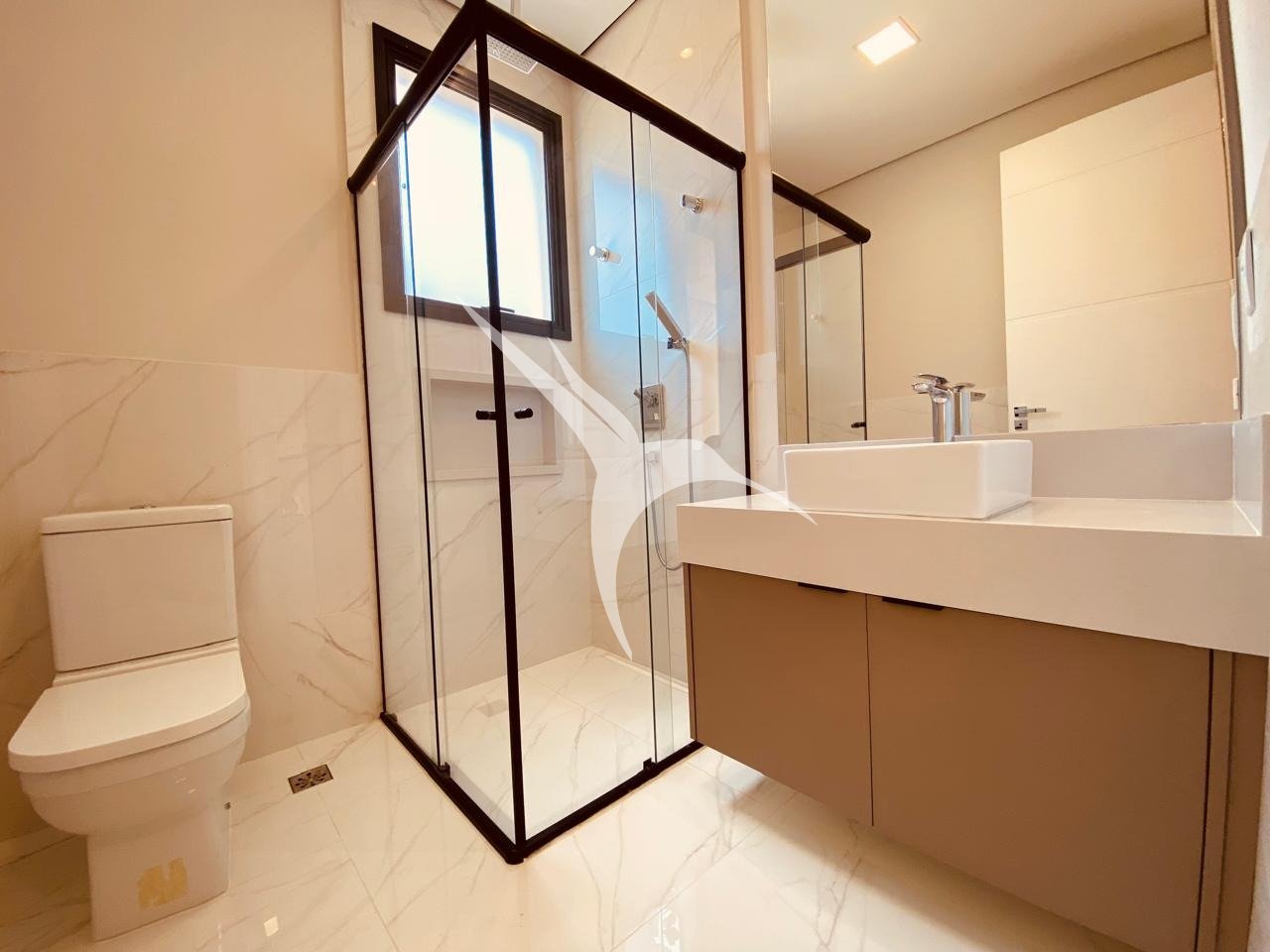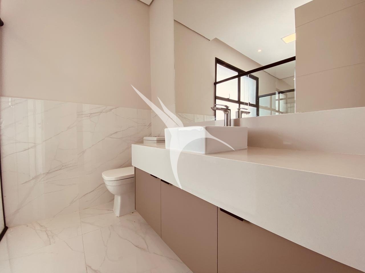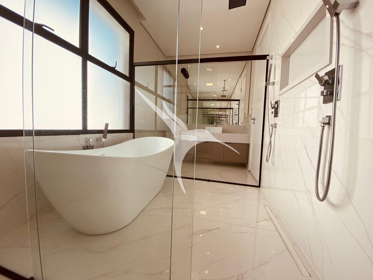 Casa nova com projeto moderno e acabamento de altíssimo padrão. Com 450m² de área de terreno e 380m² de área construída possui 4 amplas suítes, living, sala de jantar e escritório. Área de lazer com excelente espaço gourmet com churrasqueira, piscina aquecida e amplo jardim com paisagismo. Cozinha, despensa, lavanderia e suíte de serviço. Repleta de armários, eletrodomésticos, iluminação, automação e aquecimento solar. Garagem coberta para 3 carros.
