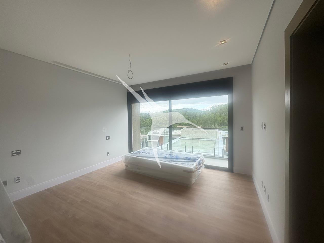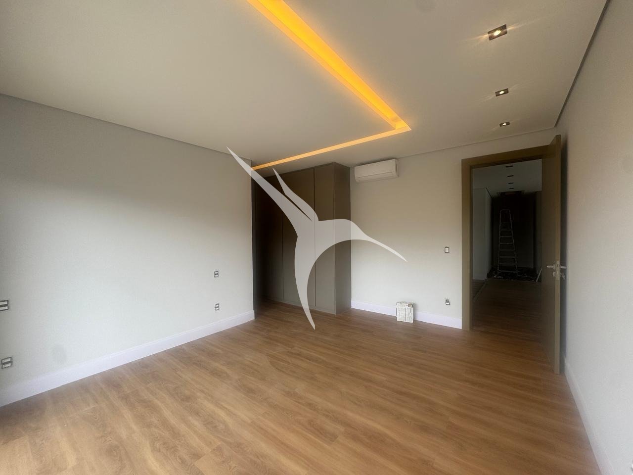São 5 suítes, sendo 4 no piso superior e 1 no térreo, todas com porta-balcão automatizada, ar-condicionado instalado, armários planejados e box nos banheiros. A suíte máster será entregue com cama.