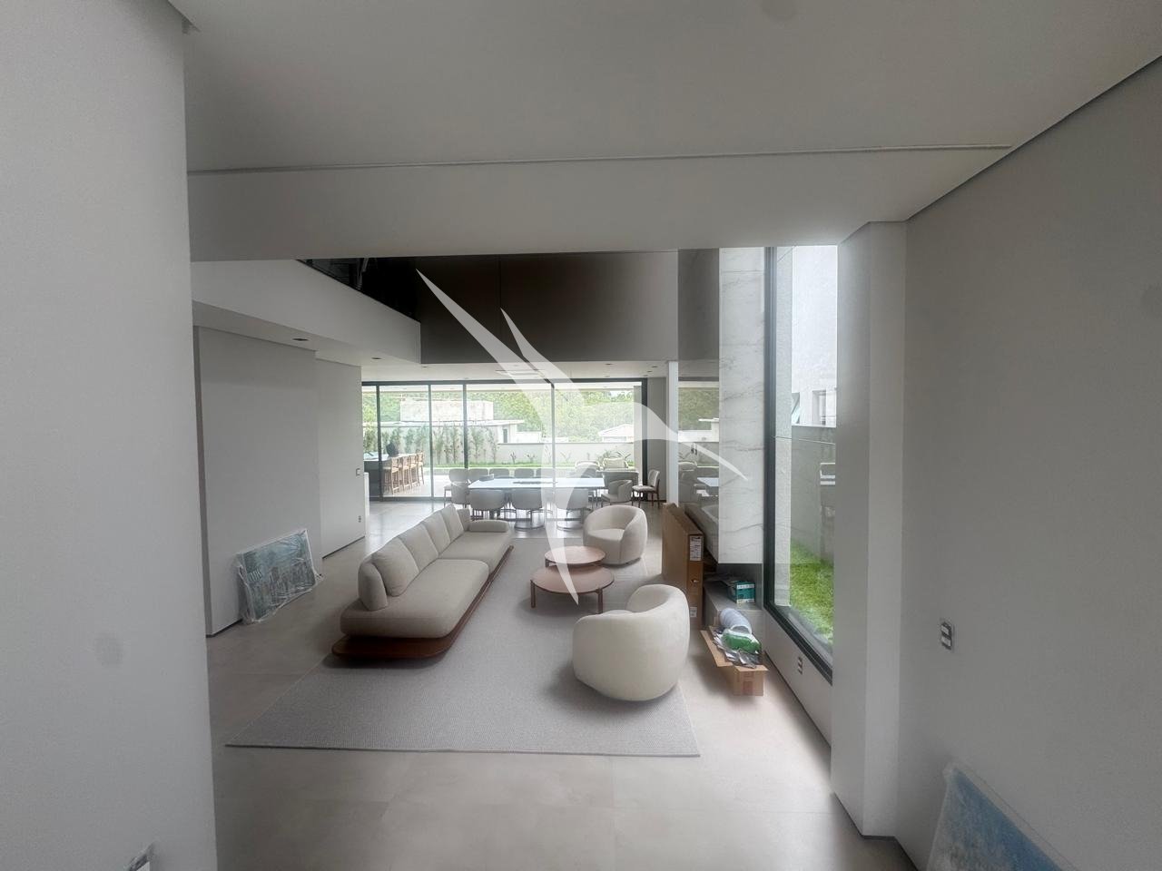 O imóvel conta com living com pé-direito duplo, sala de estar, sala de jantar e área gourmet com churrasqueira, integradas por amplos caixilhos que proporcionam iluminação natural e um ambiente perfeito para receber.