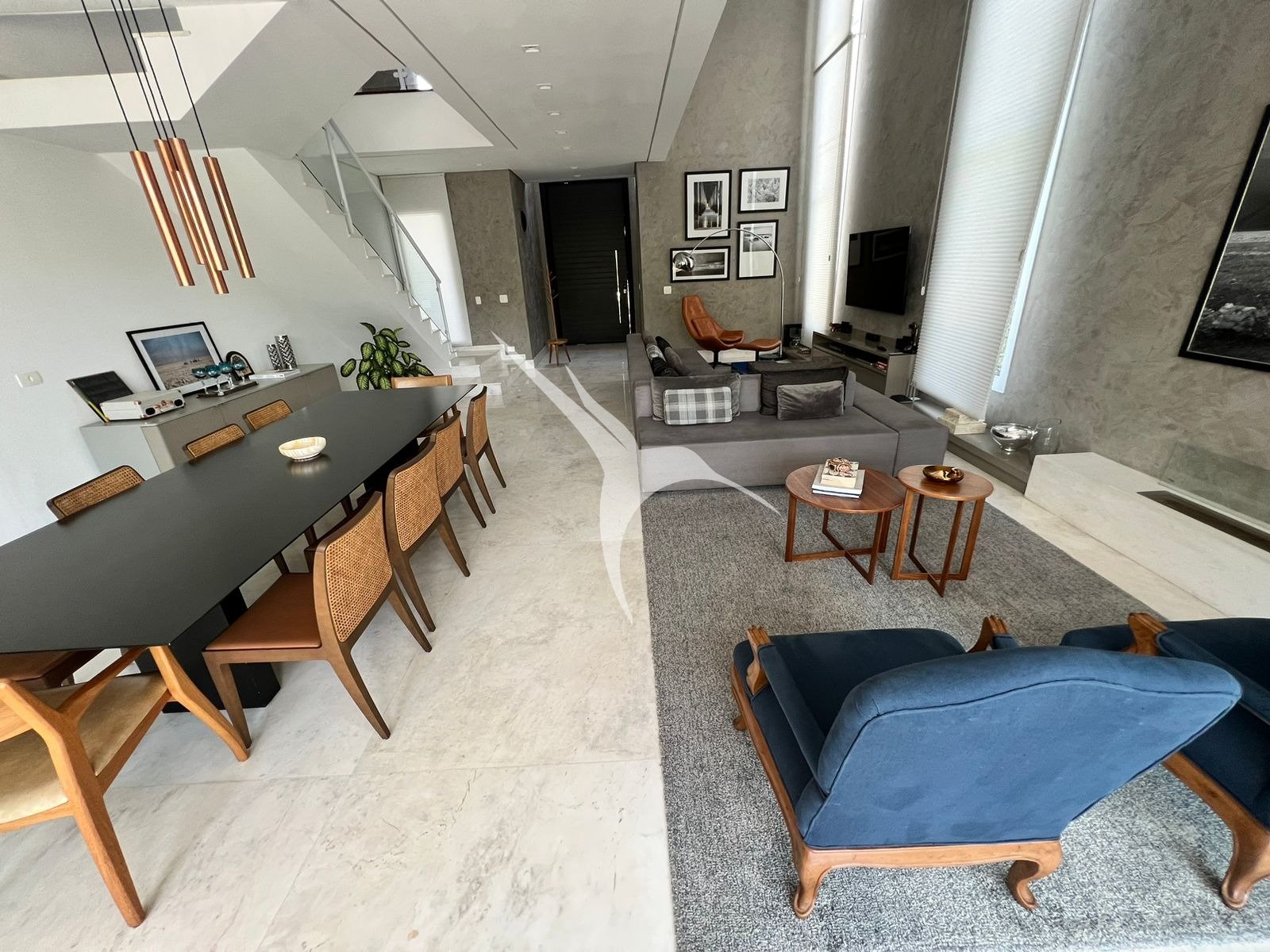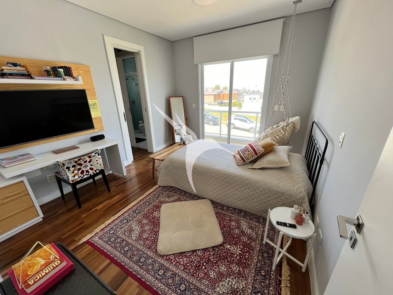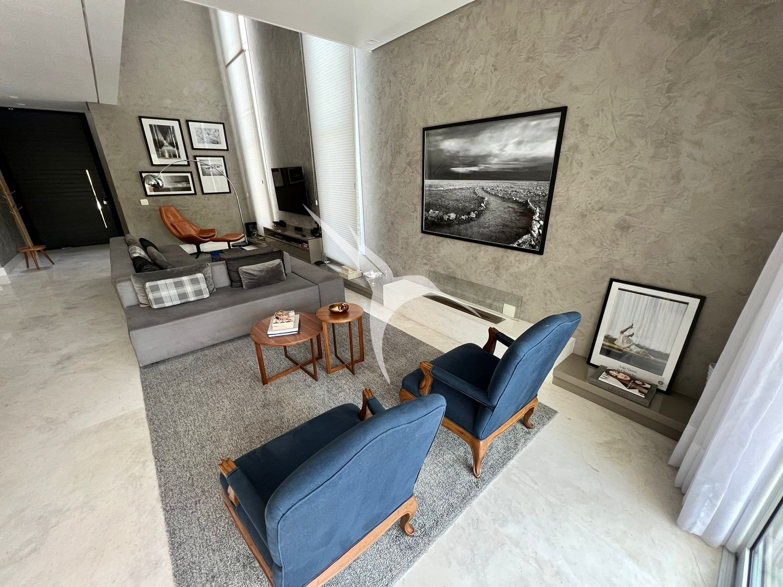 Conta com 4 amplas suítes com closet, suíte master com banheira de hidromassagem, escritório, sala de estar, sala de jantar, sala de TV, lavabo, cozinha com armários, área de serviço com lavanderia, toda integrada, com vista para a mata, área gourmet, churrasqueira, piscina aquecida e 2 vagas cobertas de garagem.