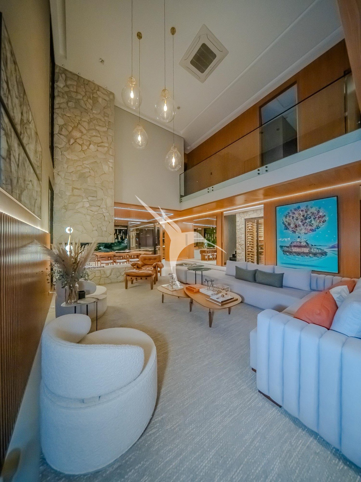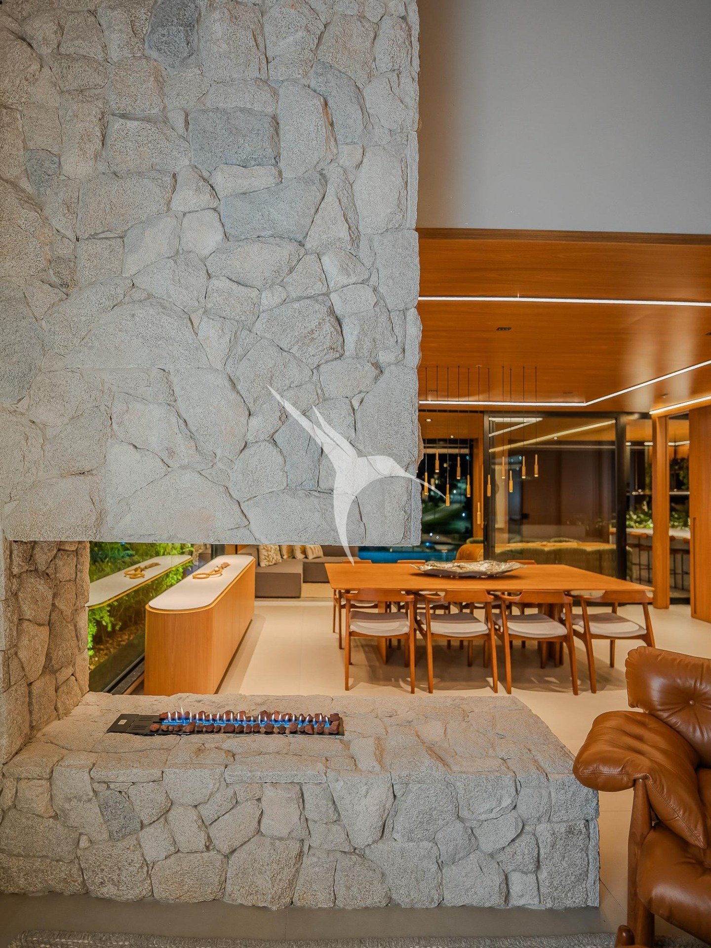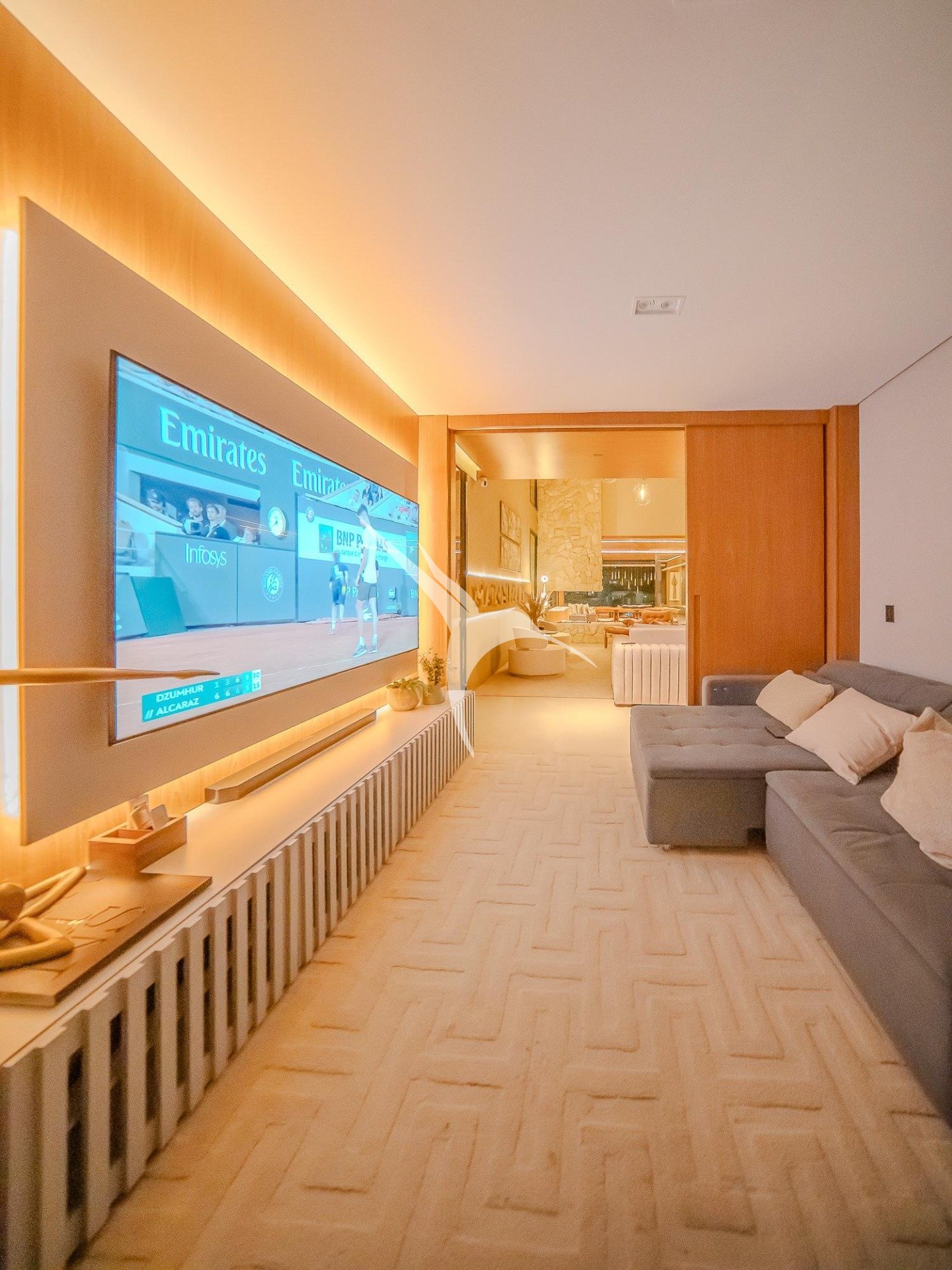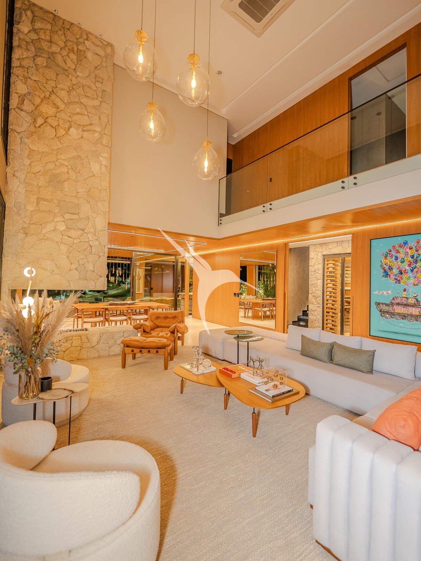 Além disso, você poderá desfrutar de um living com pé direito duplo, escritório ou brinquedoteca, adega climatizada revestida em pedra moledo , home theater, sala de estar com lareira a gás revestida em pedra moledo, sala de almoço integrada com a cozinha americana e um terraço gourmet com churrasqueira a gás e vista incrível.