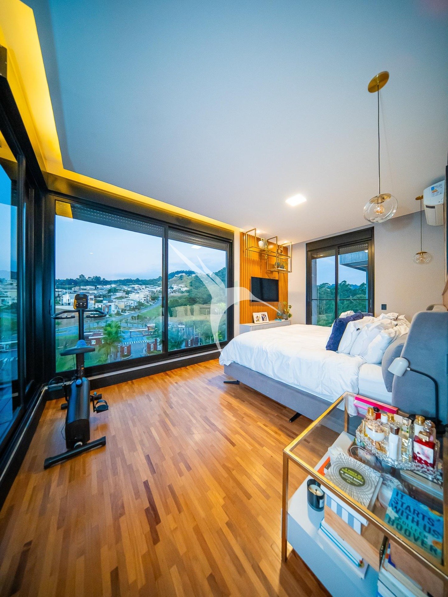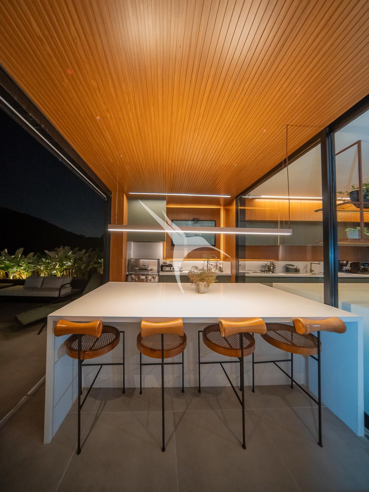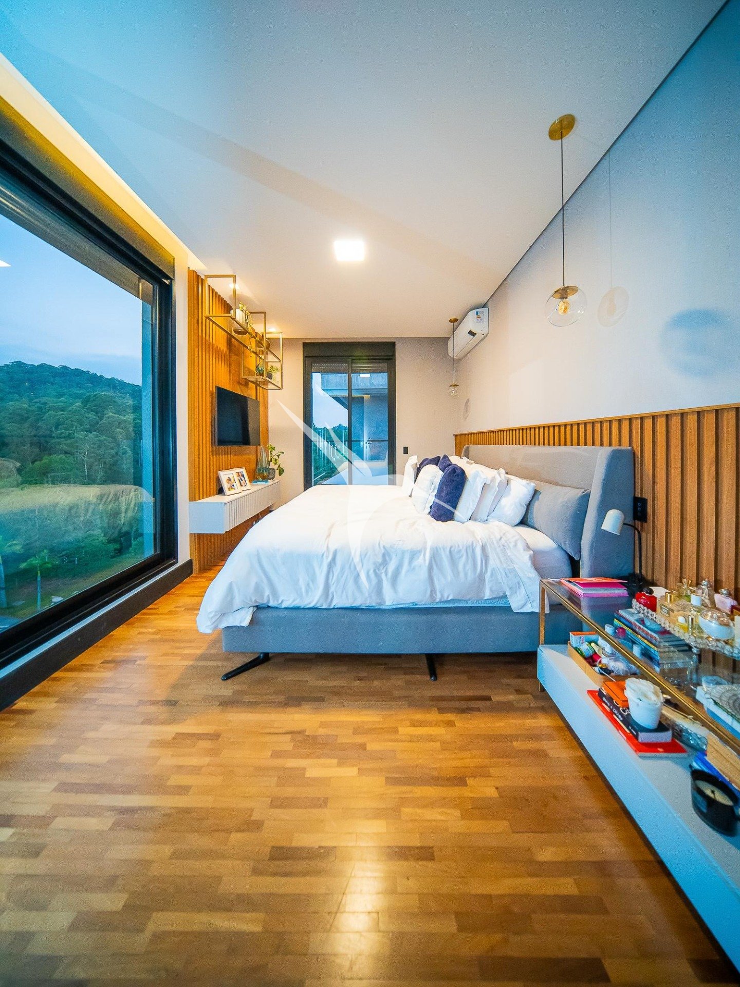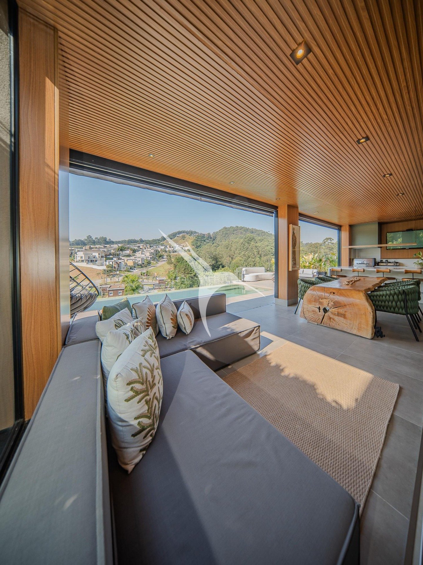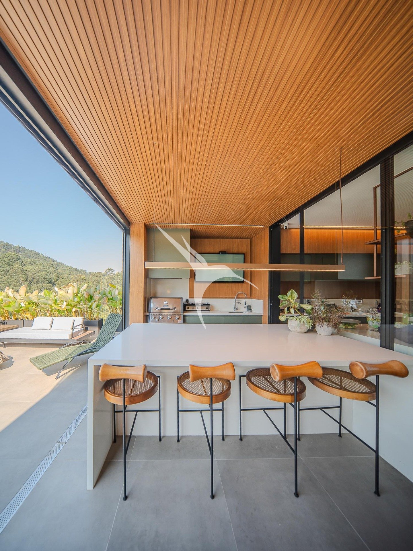 Além disso, você poderá desfrutar de um living com pé direito duplo, escritório ou brinquedoteca, adega climatizada revestida em pedra moledo , home theater, sala de estar com lareira a gás revestida em pedra moledo, sala de almoço integrada com a cozinha americana e um terraço gourmet com churrasqueira a gás e vista incrível.
