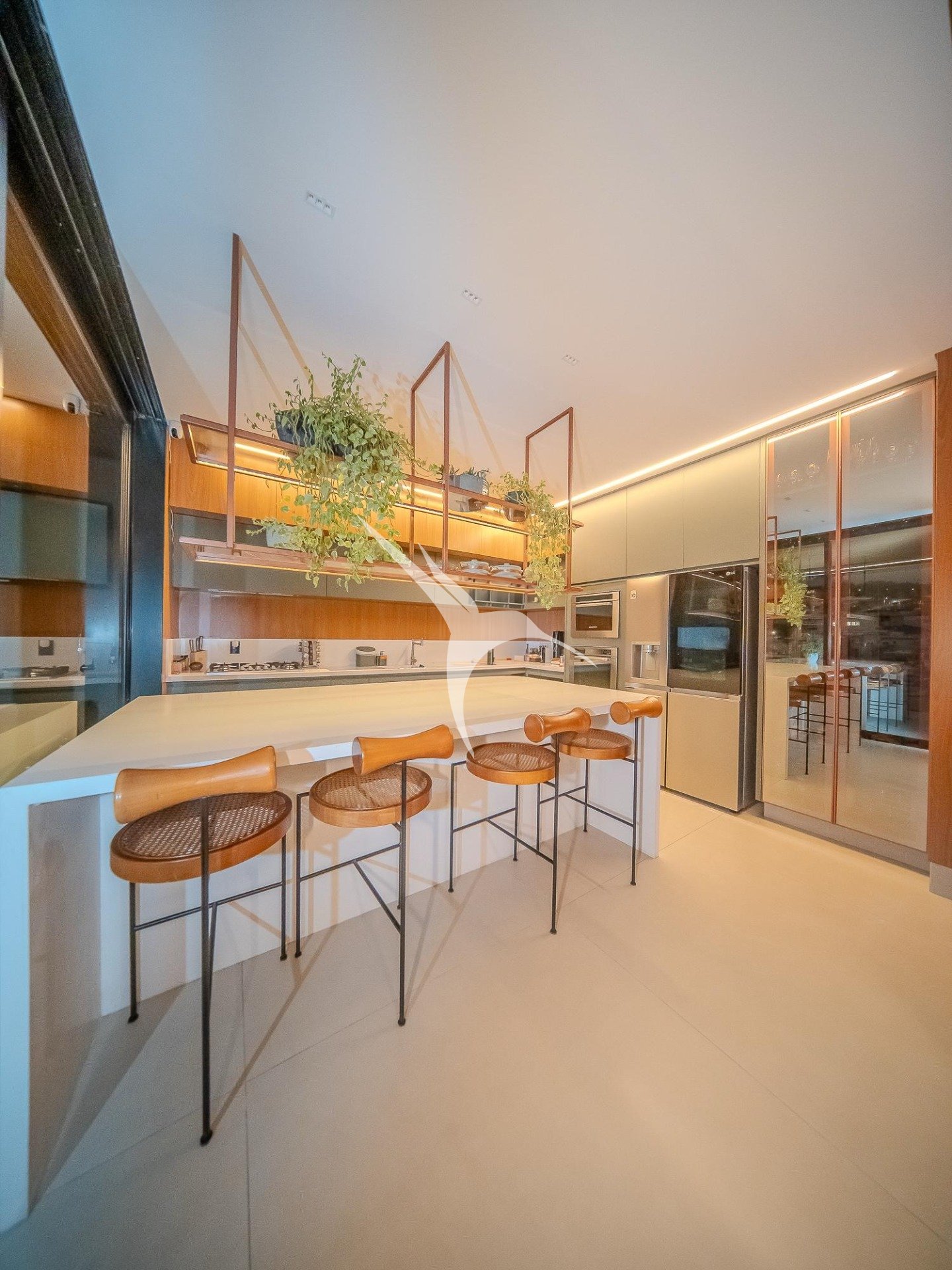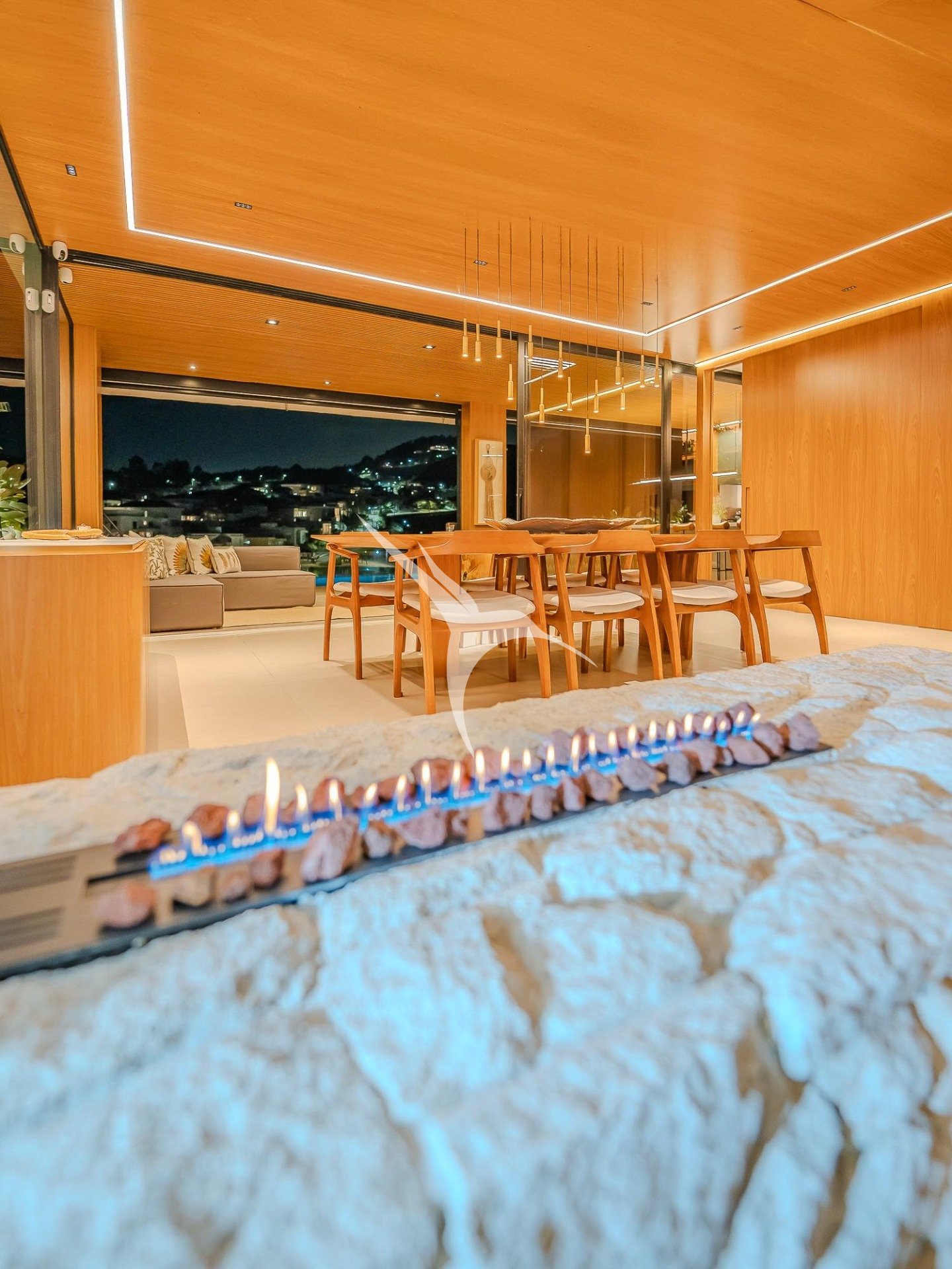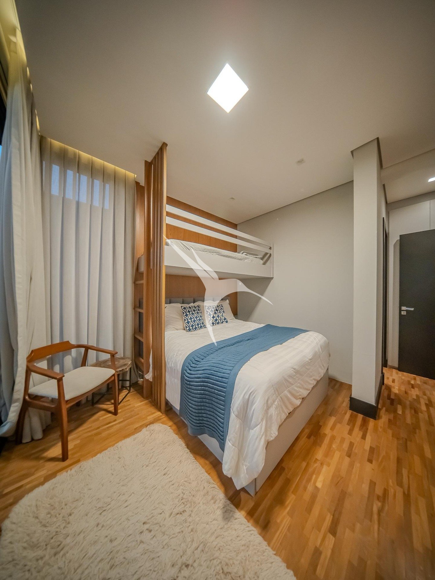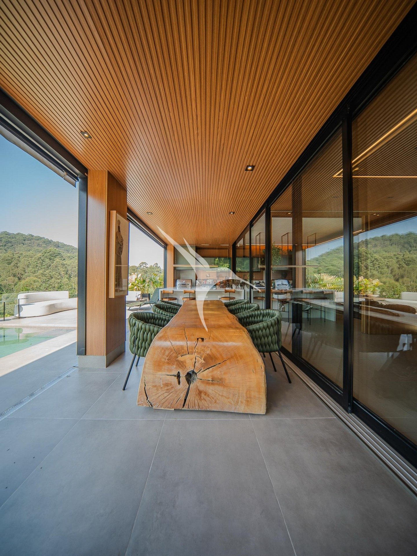 Além disso, você poderá desfrutar de um living com pé direito duplo, escritório ou brinquedoteca, adega climatizada revestida em pedra moledo , home theater, sala de estar com lareira a gás revestida em pedra moledo, sala de almoço integrada com a cozinha americana e um terraço gourmet com churrasqueira a gás e vista incrível.