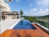 Cozinha ampla com ilha + despensa. Espaço gourmet integrado. Piscina com deck de madeira.
